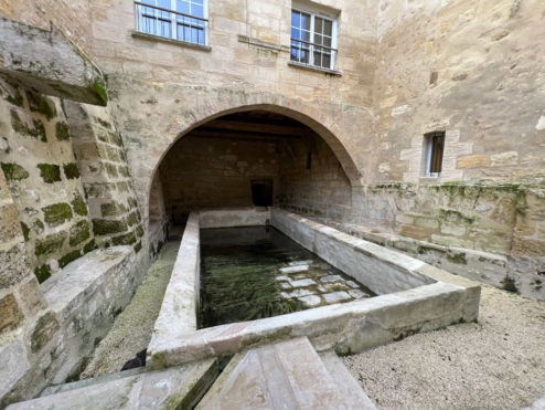 En descendant l’escalier, on découvre la particularité de ce lavoir, celle d’être construit sous une maison, un bel arc la soutenant. La configuration du lavoir tel qu’on peut le voir aujourd’hui date du XVIIe siècle. Dès le XIVe siècle, la source des Garosse qui l’alimente est reconnue pour sa pureté. De 1874 au début au XXe siècle, elle alimentait la population en eau potable. Les lavandières l’utiliseront jusqu’à la seconde guerre mondiale.